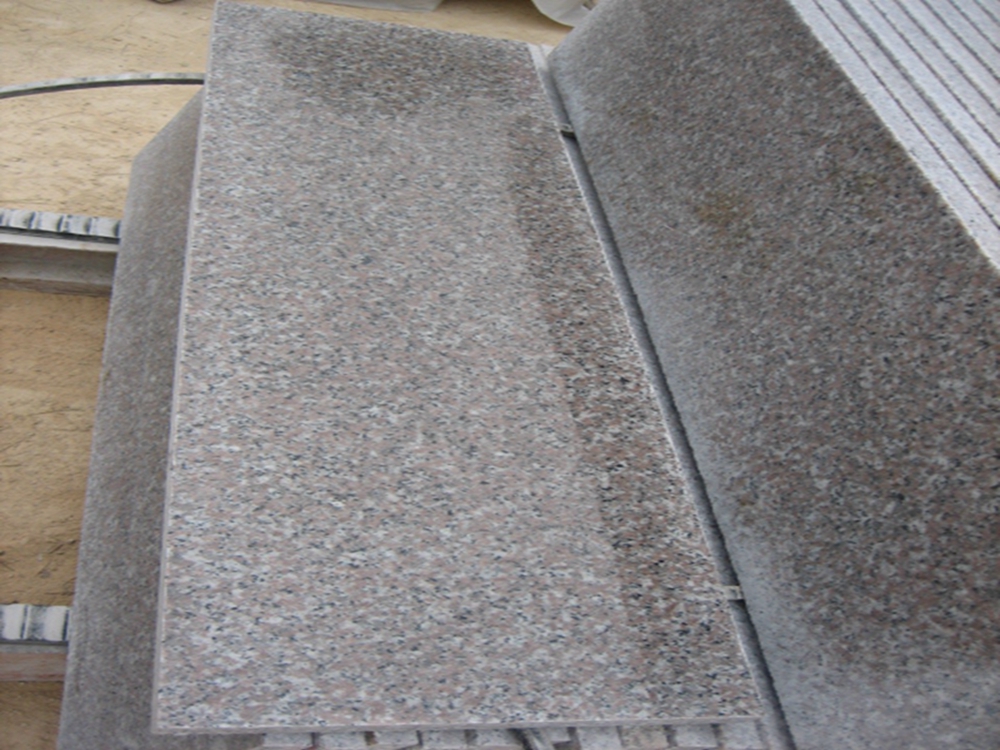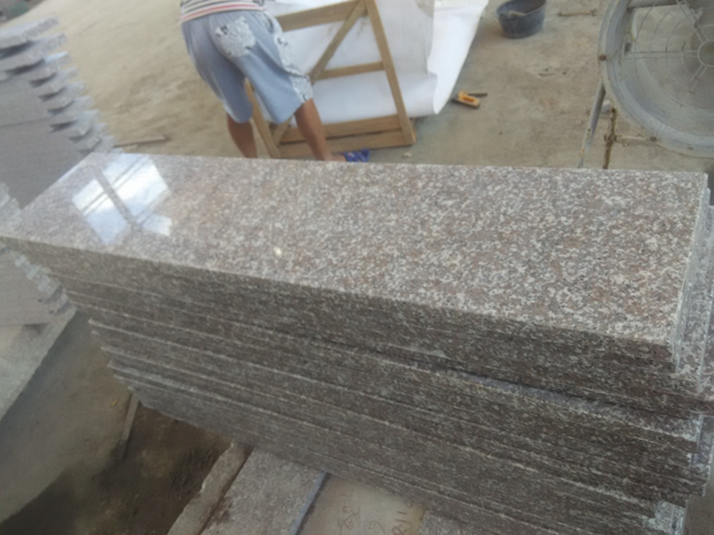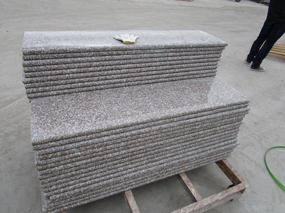 G635 Pink Granite Steps always used in the building,the steps size usually is 105-160x2cm, 105-160x3cm with eased polished, full bullnose, half bullnose, 1/4 round,1/2 round. The Granite Steps can also have Anti-slip line also. The riser size 105-160x16x2cm, the short edges with eased and polished finished.